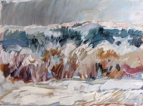 HILLSIDE FROST - Acrylic - on board - <Br>24 ins. X 32 ins.
