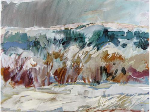 [Canadian ASA, CSPWC, RCA, SCA b. 1947] HILLSIDE FROST Acrylic on canvas 24 x 32 ins. Signed & titled