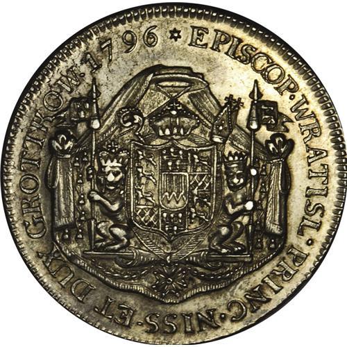 <B>Breslau. Joseph 1/2 Taler 1796K,</B></I> KM-C5, XF. Lightly cleaned with resulting hairlines. The strike is bold and some luster remains.<BR><I>From the Blue Ridge Collection</B></I><BR><BR><b>Shipping:</b> Coin/Currency (<a target="_blank" href="http://www.heritageauctions.com/common/shipping.php">view shipping information</a>)