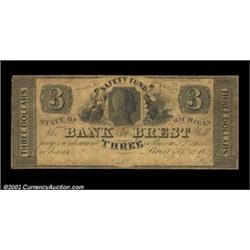 Brest, MI- Bank of Brest $3 Sept. 13, 1837 G6 Bowen 3An always in demand denomination. Fine. Importa