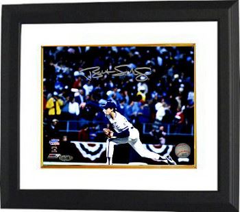 Bret Saberhagen was drafted out of high school by the Kansas City Royals in the 19th round of the 1982 Major League Baseball Draft. In 1985, the 21-year-old Saberhagen established himself as the ace of the staff, going 20–6 with a 2.87 ERA, leading the Royals to a World Series championship and being named MVP of the Series along the way, pitching two complete games in the Series, including a shutout in Game 7, and winning the American League Cy Young Award. In 1989, he showed flashes of his old brilliance by compiling a record of 23–6 with a 2.16 ERA, leading both leagues with 12 complete games, and finishing third in strikeouts. He also led the league in innings pitched, complete games, and strikeout to walk ratio. For his efforts, Saberhagen won his second Cy Young Award as the American League's best pitcher. Bret Saberhagen has hand autographed this 8x10 Photo. Steiner Sports Hologram and Certificate of Authenticity. Custom White Mat and Premium Black Frame as shown.