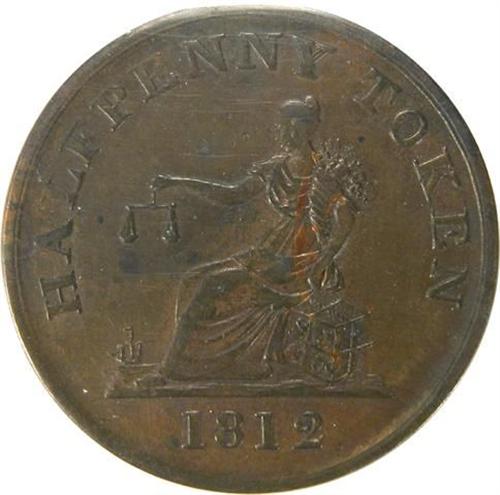 Breton 1004, 1812 Seated Justice, Short Pennant, Brass, CH LC-56A2, EF-40. Appears to be copper