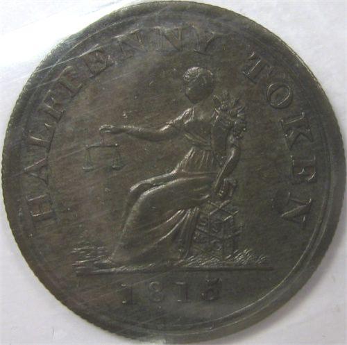 Breton 1004, Charlton LC-56B1 ICCS certified MS-60. Halfpenny Token 1815 - Bale Marked S.J. & CO, Copper, seldom encounter in mint state.