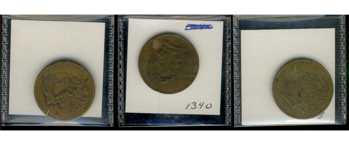 Breton 1012, Bust & Harp. Lot of 3 coins Brass and copper.