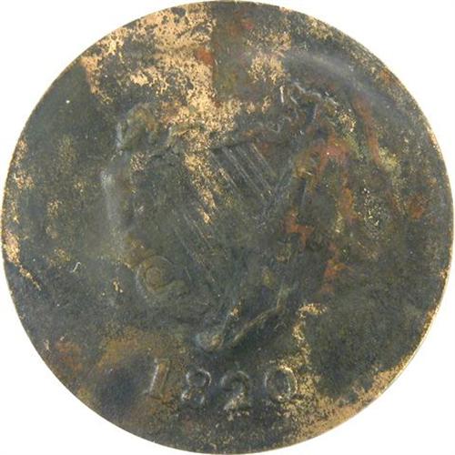 Canada Pre-Confederation Token. Breton 1012, 1820 Imitation Bust & Harp Token, Nine Strings, Brass, CH LC-60E2, BH-15, ICCS MS-60. With the typical crude manufacture
