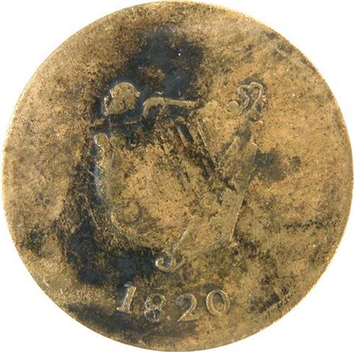 Canada Pre-Confederation Token. Breton 1012, 1820 Imitation Bust & Harp Token, Nine Strings, Brass, CH LC-60E2, BH-17, ICCS MS-60. With the typical crude manufacture