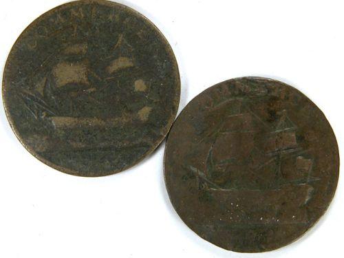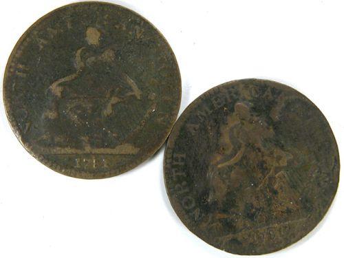 Breton 1013, AM-5A1 1781 North American Token, Copper and AM-5A2 1781 North American Token, Brass, both Fine