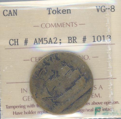 Breton 1013, Charlton AM-5A2, ICCS certified VG-8, Brass, 1781 North American Token, Also listed in US red book on page 69.