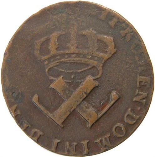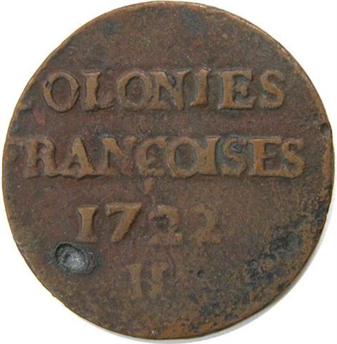 Canada Pre-Confederation Token. Breton 506, 1722H Colonies Françoises 9 Deniers, VF with dig. A nice example with the typical soft strike. There is some minor corrosion on the surfaces and a small stab near the reverse rim
