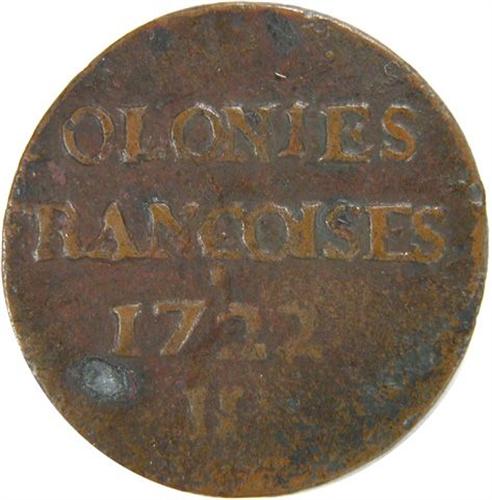 Breton 506, 1722H Colonies Francoises, VF with dig. A well-detailed example with some minor surface corrosion and a small stab on the reverse
