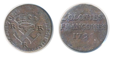 9 Deniers. 1722-H. Fine+. An unusual counterstamp of ‘R..R..R’ on the obverse. The counterstamp is unlisted in Brunk and unknown to the cataloguer.