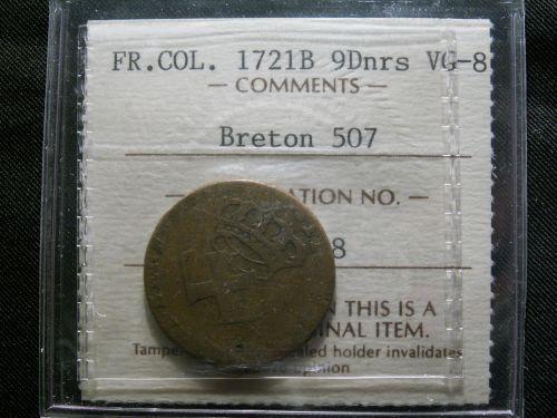 Breton 507 9 Deniers Colonies Francoises, 1721-B. ICCS VG8