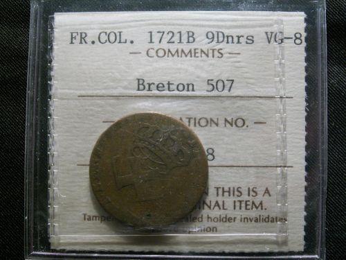 Breton 507 9 Deniers "Colonies Francoises, 1721-B. ICCS VG8