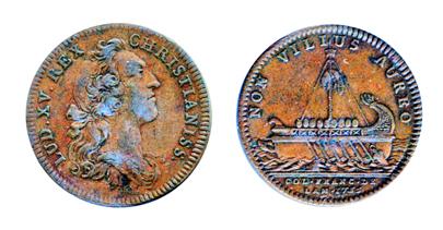 Breton-515. Jeton. 1755. Argonaught’s Vessel. ICCS Very Fine-20. An original copper token.