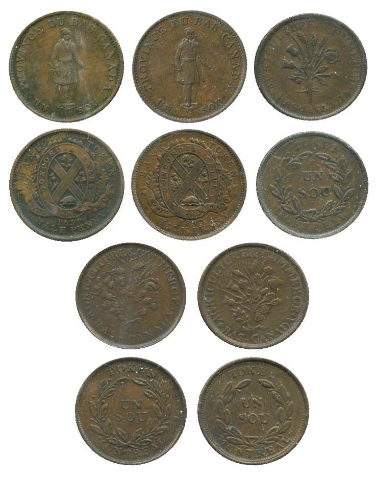 LC-8A1. LC-8B1, Breton-678. LC-23C. Bouquet Sou; Breton-691. LC-27A1. Bouquet Sou; Breton-688. LC-31A. Bouquet Sou. Lot of five (5) Tokens, all Very Fine+.