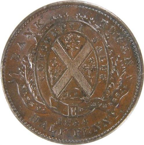 Breton 527, PC-1B1 1844 Half Penny, Tall Trees, Short Nose, ICCS MS-63. A fully struck and strongly lustrous brown example with near flawless surfaces