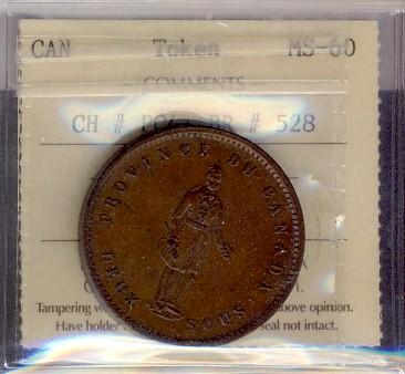 Breton #528, Charlton #PC4, graded ICCS MS-60. 1852 Quebec B