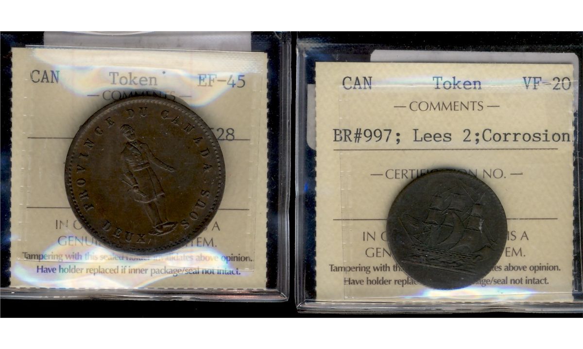 Breton 528 PC-4 &997 Lees 2. Lot of 2 coins both ICCS graded EF45 and VF20 respectively with Lees 2 designated with corrosion.