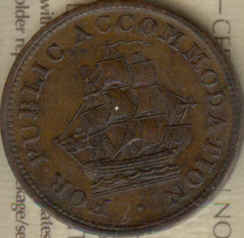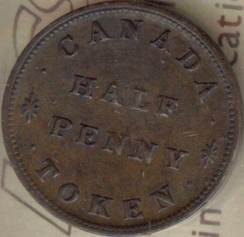 Breton 533, Charlton LC-14 ICCS certified EF-40; Upset Die. Canada Half Penny Token, 1815, For Public Accomodation. Unlisted coinage alignment.
