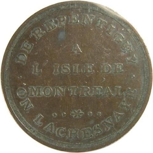 Breton 545 Bridge Token, de Repentigny a L’Isle de Montreal on Lachesnaye, Personne, Original, ICCS VF-30. A nice example