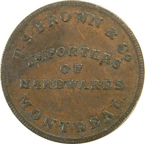 Canada Pre-Confederation Token. Breton 561, TS Brown & Co, Montreal, Close S, Period, CH LC-15A1, VF, Ex Barney Bluestone February 1938 and Breton 561, TS Brown & Co, Montreal, Far S, No Period, CH LC-15A2, ICCS VF-30. Total two pieces