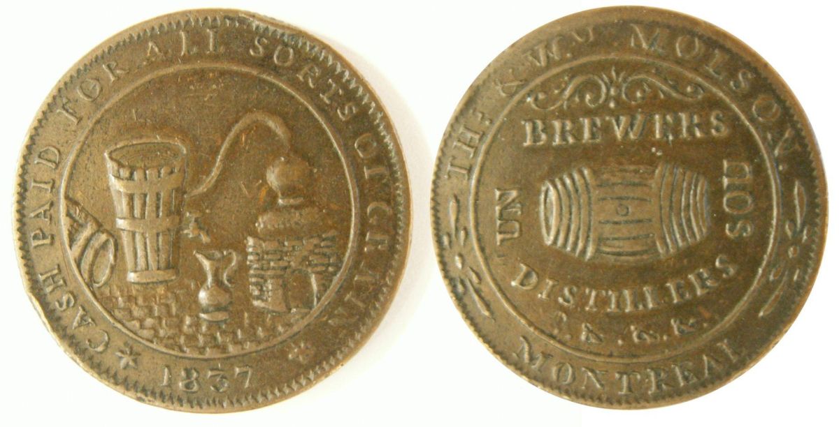 Breton # 562, CH-LC-16a1, 'Molson Brewers token' 1837 EF. Ni
