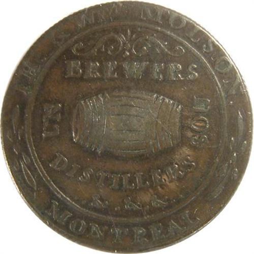 Breton 562 Ths & Wm Molson, Thin Flan, Reeded, LC-16A3, ICCS VF-30. This is a rather sharp example of this scarce token