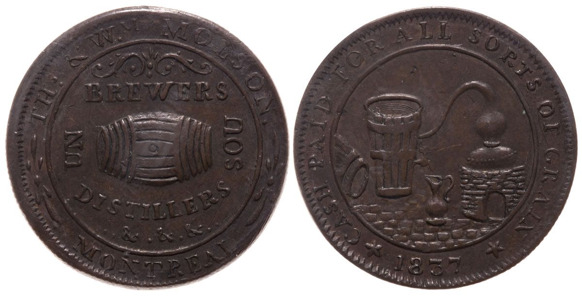 LC-16A. "Cash Paid For All Sorts Of Grain 1837" – THS & WM Molson Montreal Brewers Distillers &&& Un Sou. Reeded Edge, ICCS graded Extremely Fine-40.