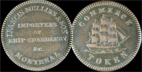 Breton 563 Francis Mullins Montreal "Commerce Token" about EF condition. Rather infrequently offered and seemingly underquoted type. This piece struck in copper.