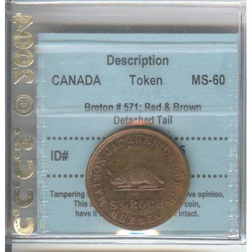 Breton # 571, graded CCCS MS-60; Red & Brown, Detached Tail. Lot of remaining Luster.