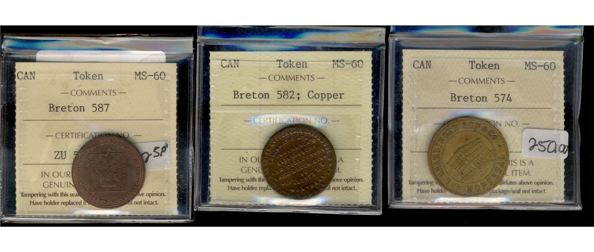 Breton 574,582 Copper & 587 ICCS MS60. Lot of 3 examples.