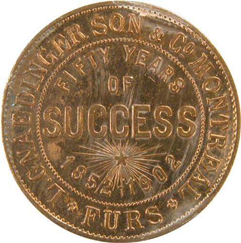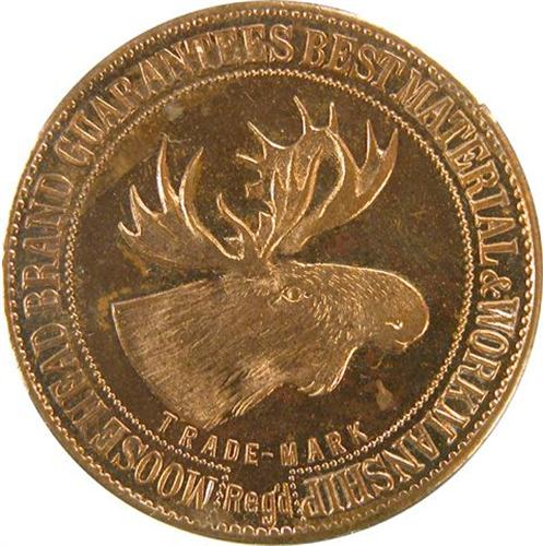 Canada Pre-Confederation Token. Breton 574a, 1852-1902 L Gnaedinger Son & Co, Montreal, 50th Anniversary Moosehead, Cornwell Gem Unc. Strong cameo and about 90% red