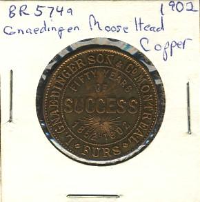 Breton: 574a, Gnaedingen Moose Head copper, 1902, Choice Unc.