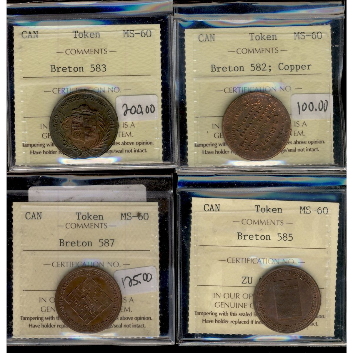 Breton 582,583,585 & 587 ICCS MS60. Lot of 4 tokens.