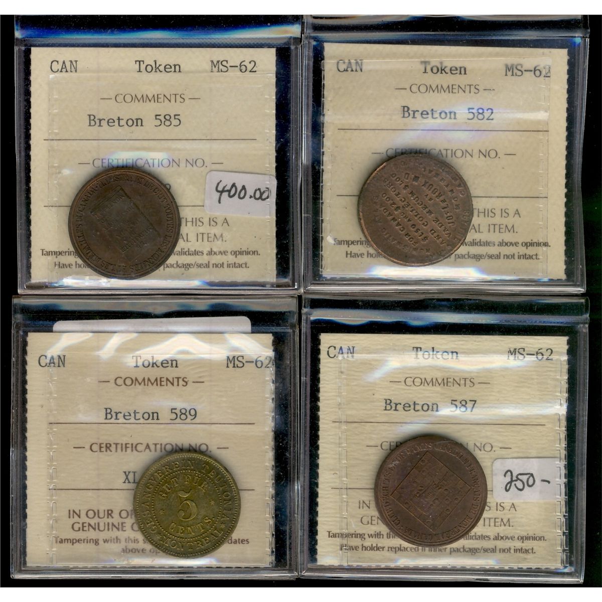 Breton 582,585,587 & 589 ICCS MS62. Lot of 4 tokens.