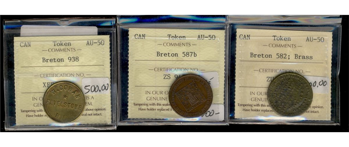 Breton 582 Brass, 587b & 938 ICCS AU50. Lot of 3 issues.