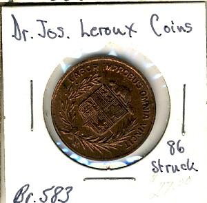 Breton: 583, Jos Leroux, coins, Montreal. Choice Unc. Only 86 pcs. Struck