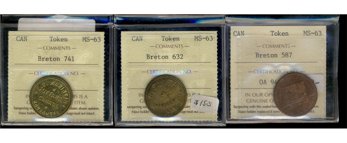 Breton 587,632 & 741 ICCS MS63. Lot of 3 tokens.