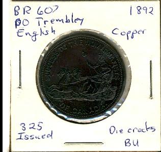 Breton: 607, 1892 P.O. Tremblay, AU-UNC. Only 325 pcs. Minted.
