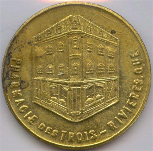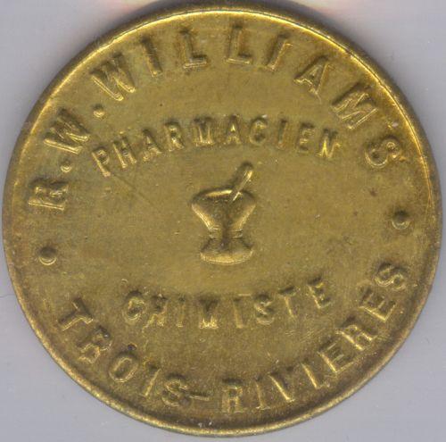 Breton # 614 R. W. Williams Pharmacien Chimiste Trois-Rivieres, P.Q. UNC, Brass, Building.