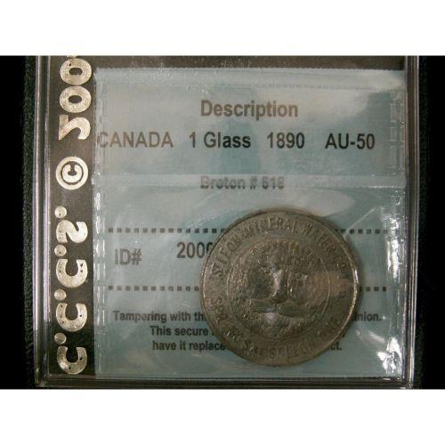 Breton # 618, graded CCCS AU-50. St Leon Water, Good for 1 Glass 1890. Beautiful token.