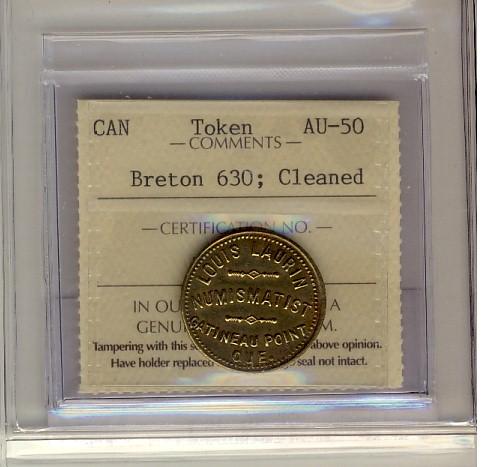 Breton #630 ICCS MS60,lty. Cld. Louis Laurin, coins, etc