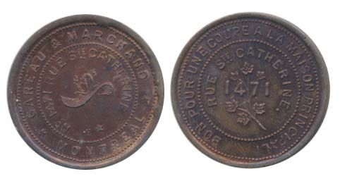 Gareau & Marchand. 1471 Rue St.Catharine. Copper. Unc.