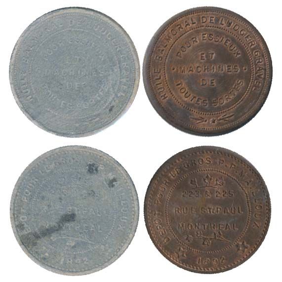 Ludger Gravel. Copper. 16.4 gms. AU. Traces of lustre; another, in Lead. 18.20 gms. Very Fine. Lot of two (2) tokens.