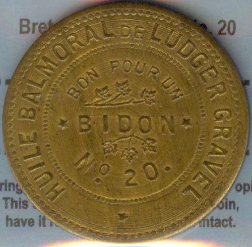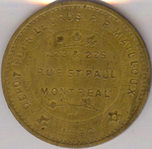 Breton # 643, CCCS certified MS-63. Huile Balmoral Ludger Gravel - Bon pour un bidon No 20 - 1892 - Dépot pour le gros P.P. Mailloux - 223 & 225 rue St-Paul, Montreal.
