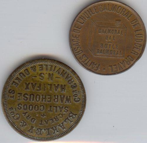 Breton # 647a P.P. Mailloux/Balmoral Oil AU with a bad rim bump and Breton # 901 Blakley & Cos 1882 Nova Scotia in VF/EF.