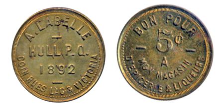 Breton-652. A Labelle. Hull. 1892. 5 Cents. Brass. ICCS Mint State-60.
