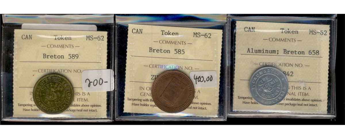 Breton 658 Aluminium,585 & 589 ICCS MS62. Lot of 3 issues.