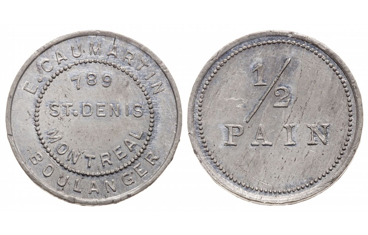 E. Caumarin. 1/2 Pain. White metal. Incomplete design on obverse and reverse. Extra Fine.