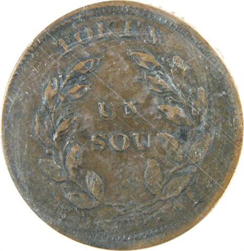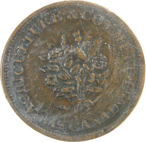 Canada Pre-Confederation Token. Breton 689, Bouquet Sou - Twenty-one Cherry Leaves, No Shamrocks, Copper, CH LC-43A3, ICCS VF-30. This example also appears to have been double struck, with the reverse die considerably misaligned, though differently than the previous lot